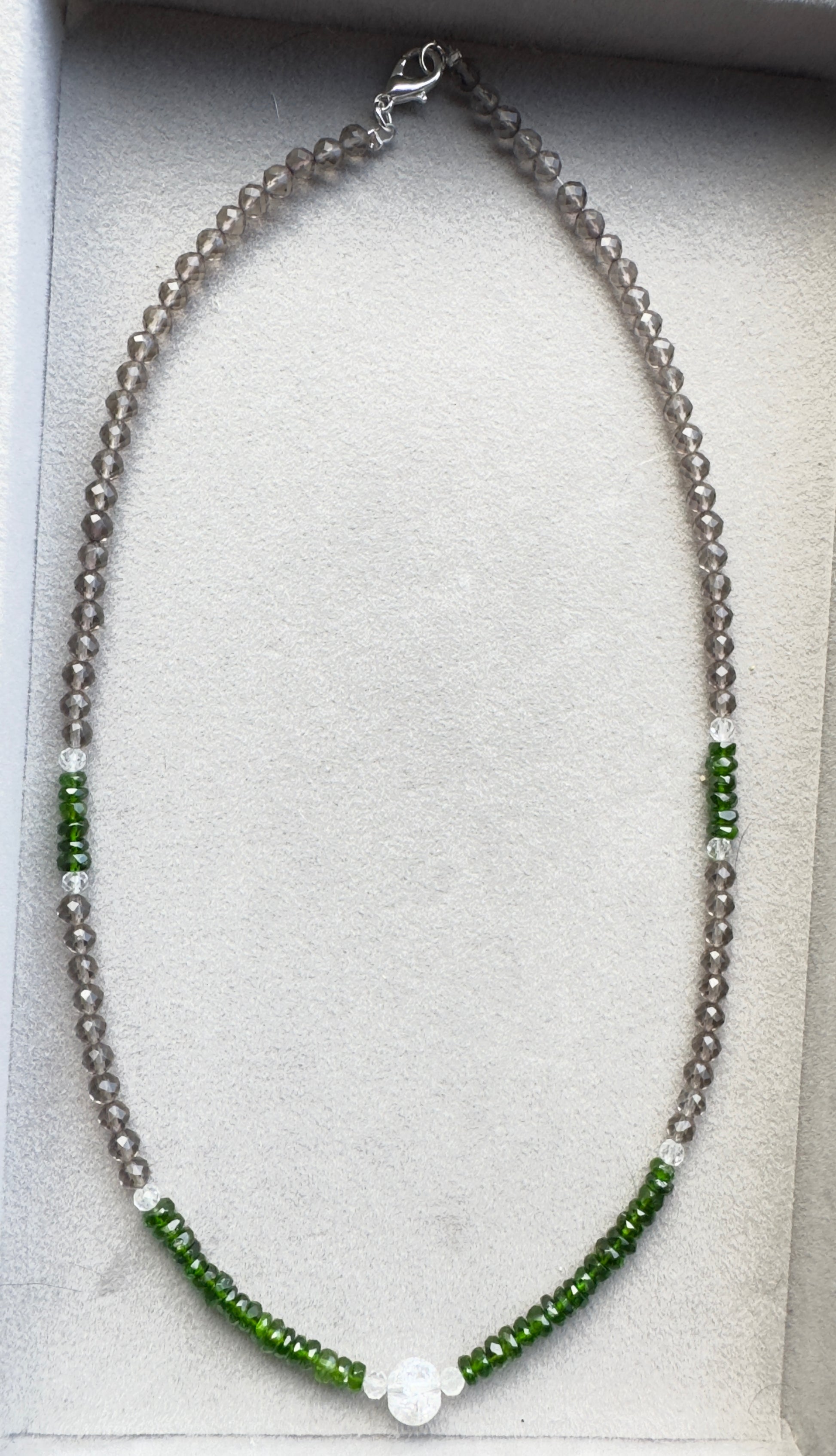 Chokerkette aus Rauchqurz mit Diopsid und Bergkristall