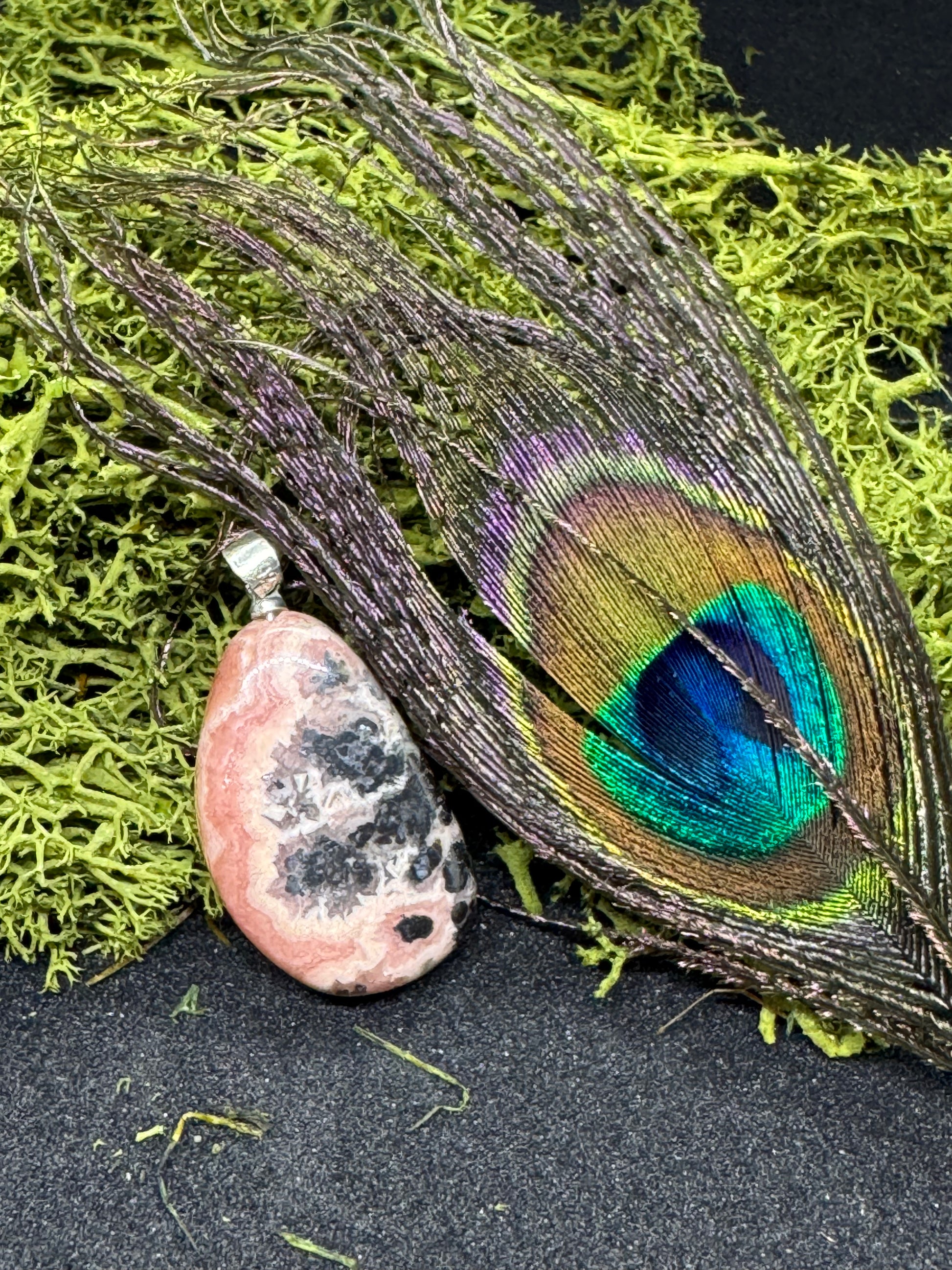 Dieser wunderbare Rhodochrosit-Anhänger verkörpert die zeitlose Kraft der Liebe und inneren Heilung.